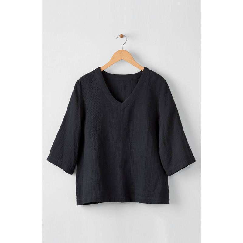 Kochi Double Gauze V-Neck Top - Black
