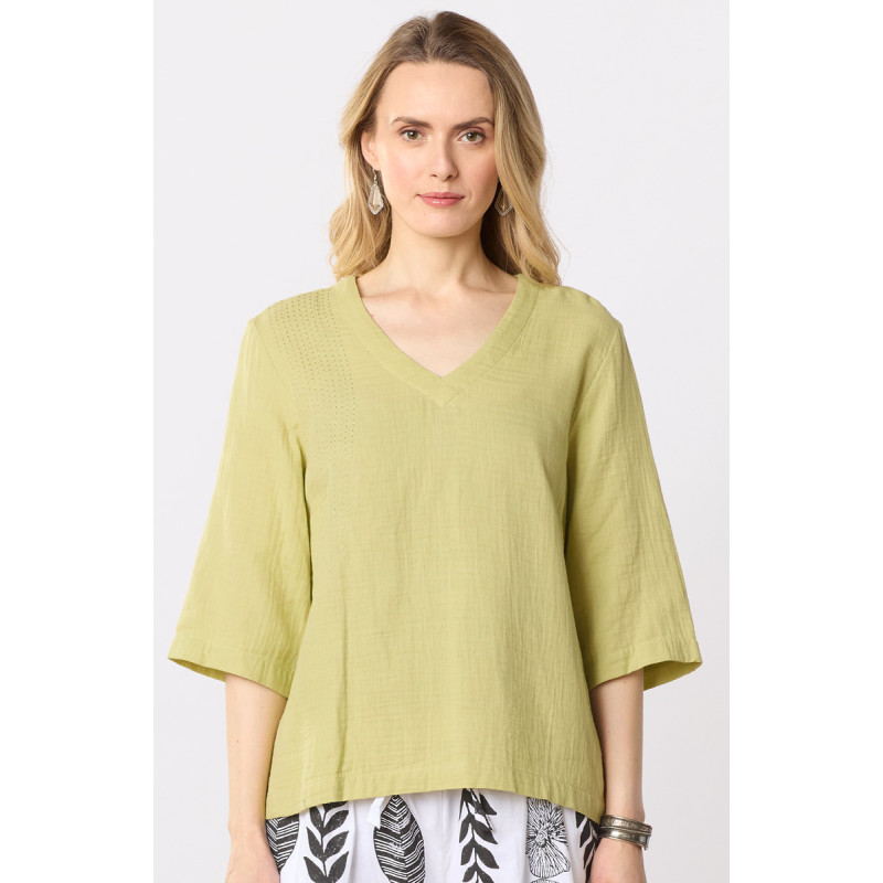 Kochi Double Gauze V-Neck Top - Kiwi